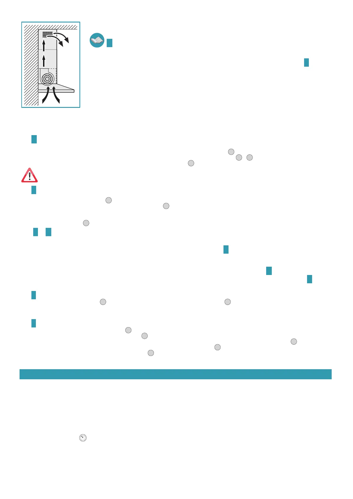 Hvis emhætten er forberedt i den ltrerende version skal kontraventilen ikke monteres: Demonter den, hvis den eventuelt er