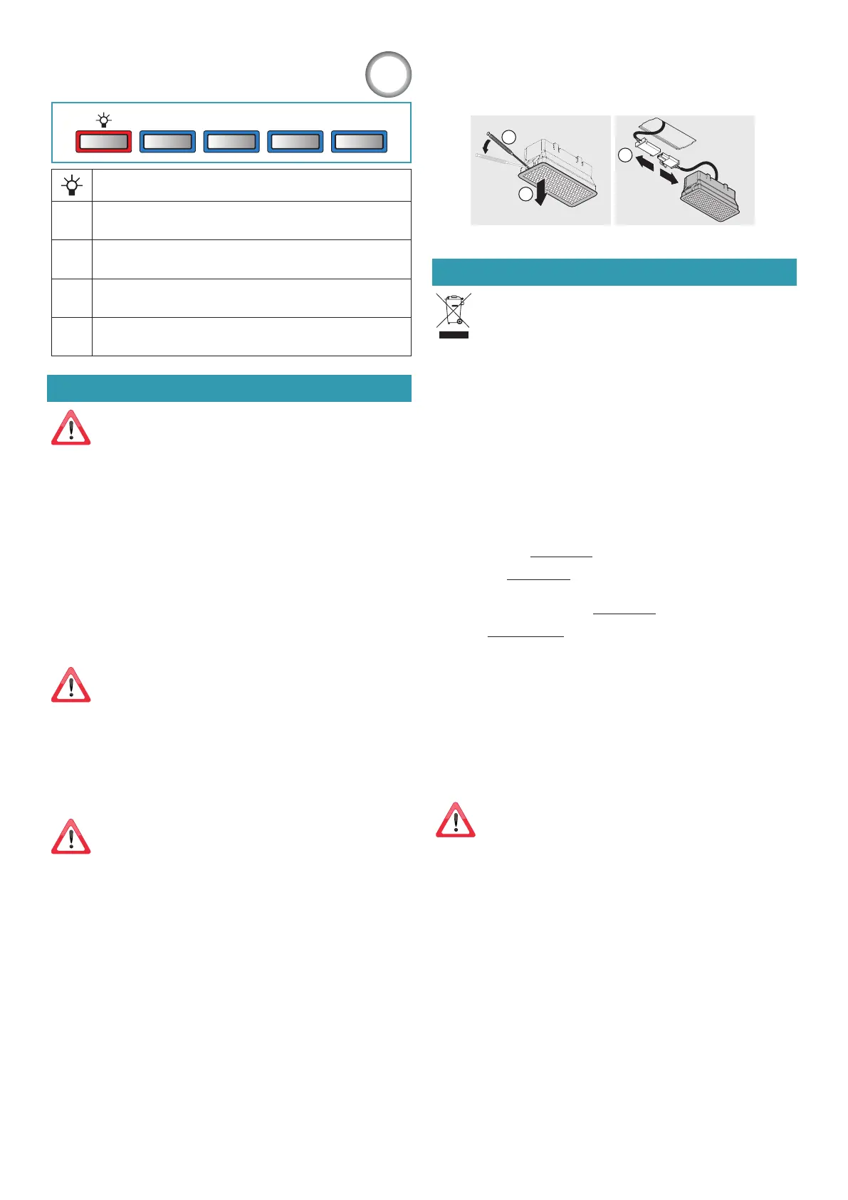 Per l’estrazione e l'inserimento dei filtri metallici antigrasso vedi istruzioni di montaggio.