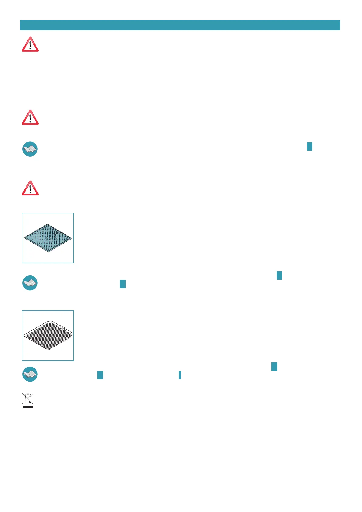 Särskild uppmärksamhet bör ägnas åt metallfettltren och åt de aktiva kolltren. Regelbunden rengöring av ltren och deras stöd kommer att se till