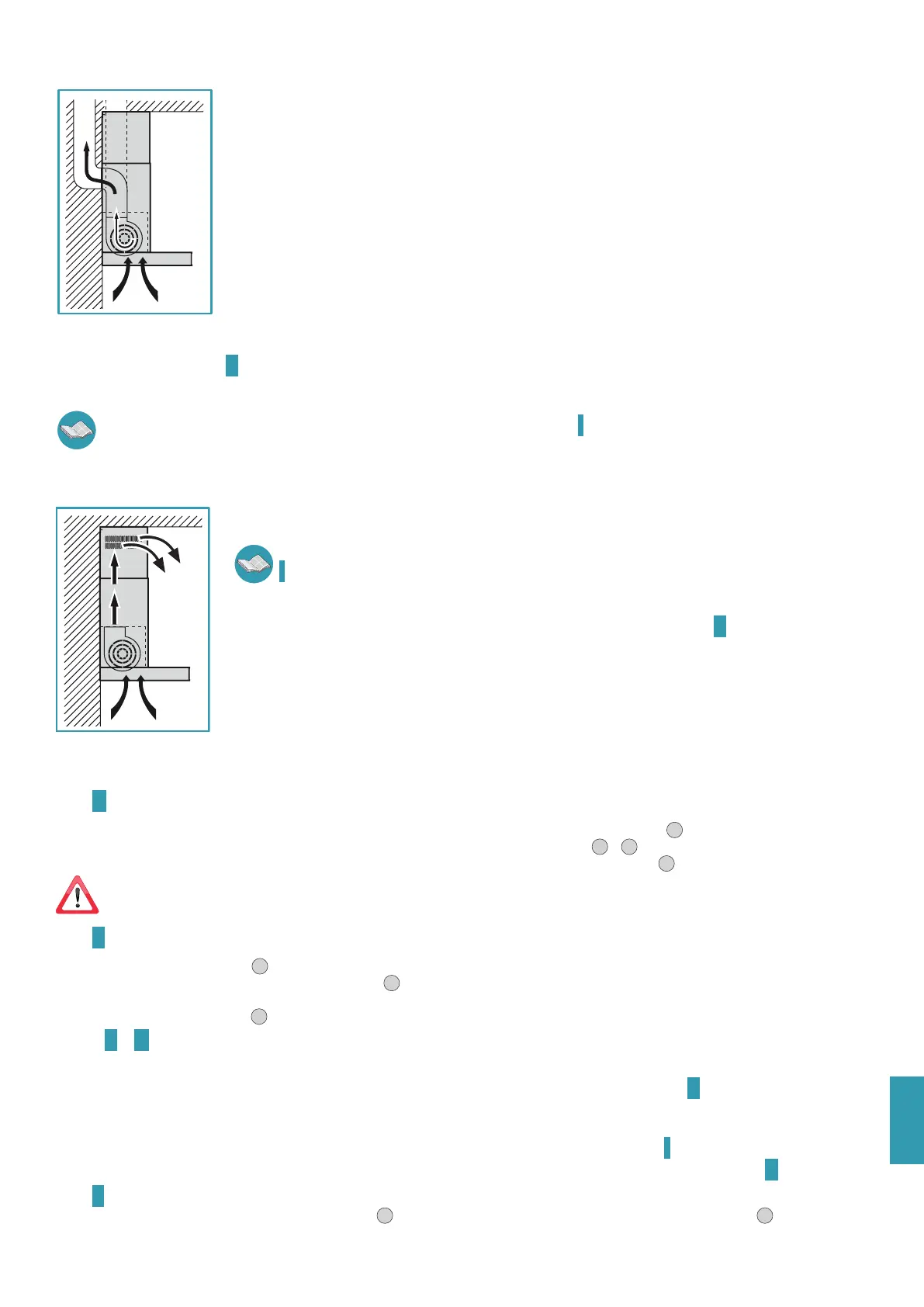 •Ulkoisen poistoputken version tapauksessa (imu) jatkokappale (H) on mahdollista asentaa aukot alaspäin, jotta ne eivät jää näkyviin, jos vain