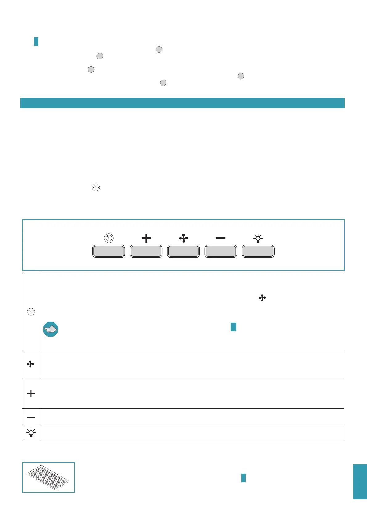 Ved å trykke på tasten tennes (eller slukkes) motoren på ventilatorhetten: denne igangsettes med siste valgte hastighet før den foregå-