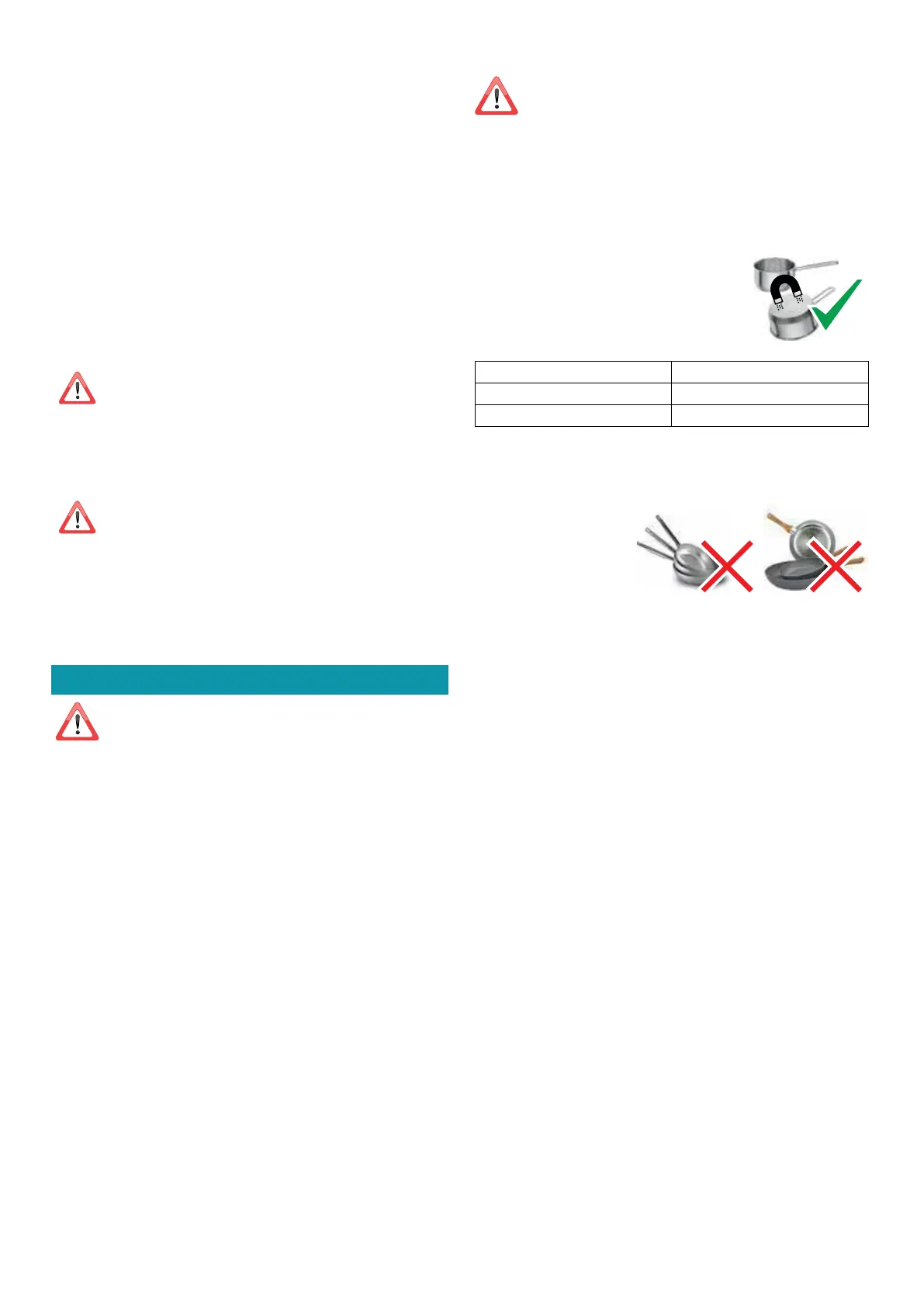 ⢠Only use cookware with smooth and magnetic bottom suitable for in-