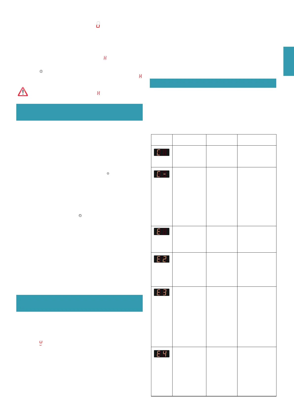 hibák esetén a hibás főzőzóna kijelzőjén felváltva villog az „E” betű és egy „X”