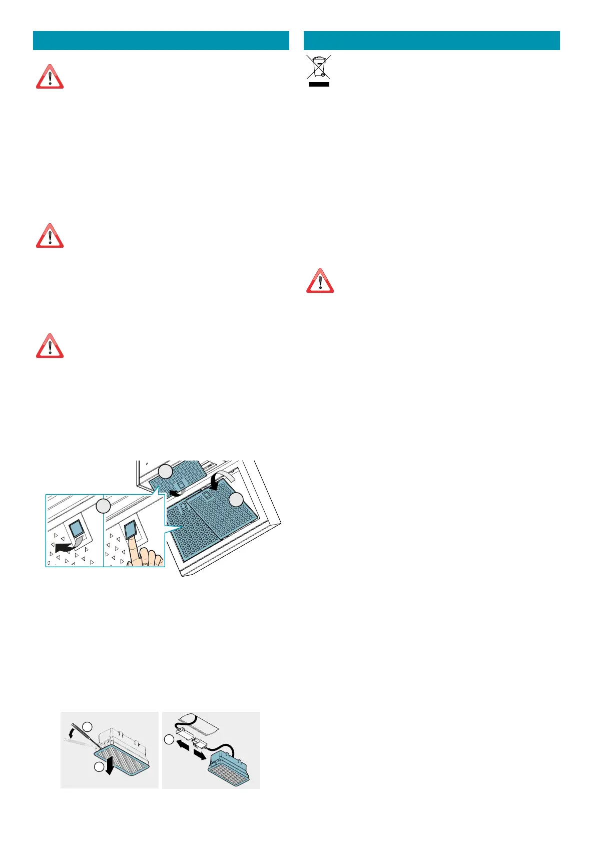 Special attention is to be paid to the metal anti-grease lters : frequent cleaning of the