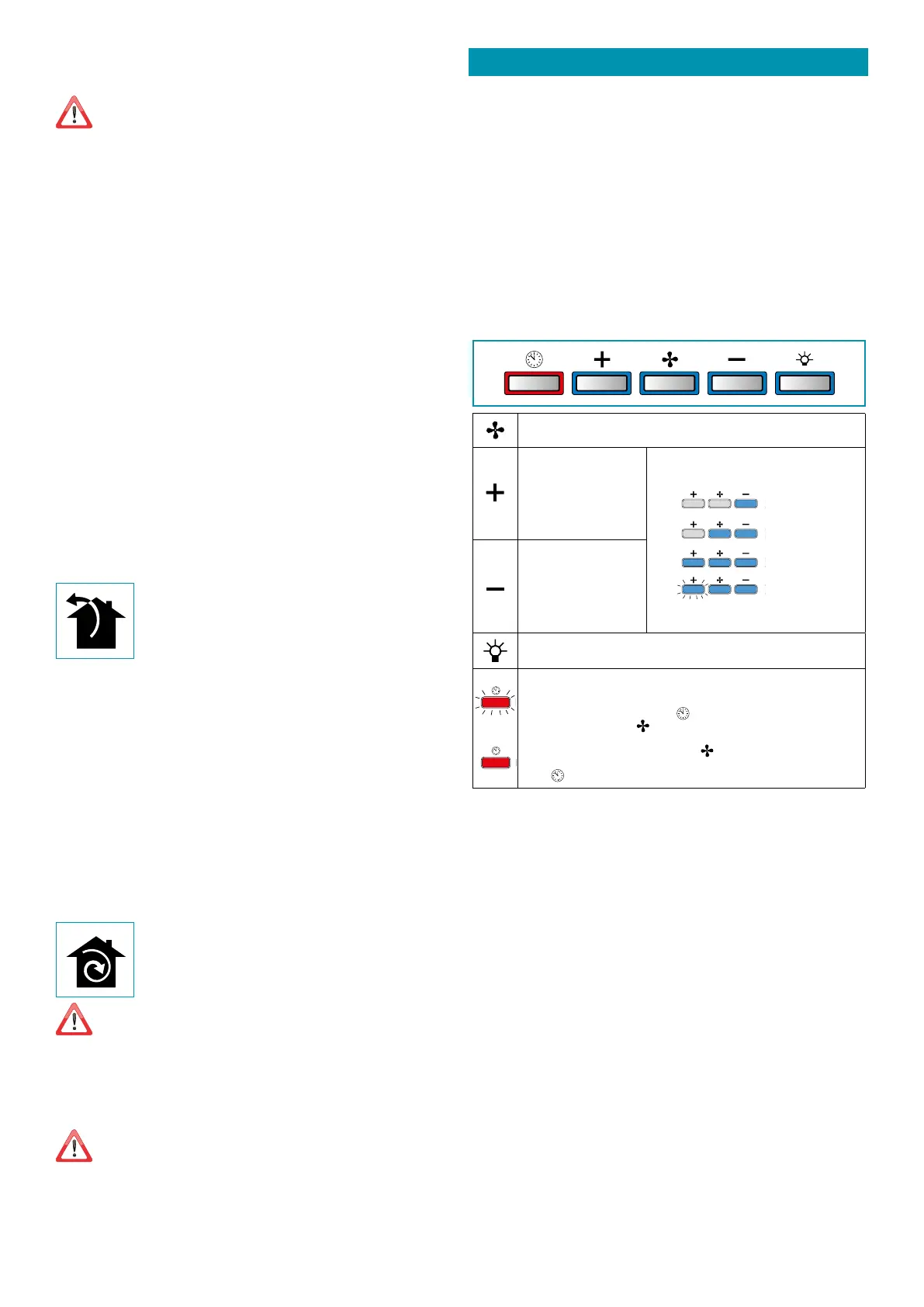 Slå på ventilatorhetten minst ett minutt før matlagingen startes, for å lede bort røyk og damp