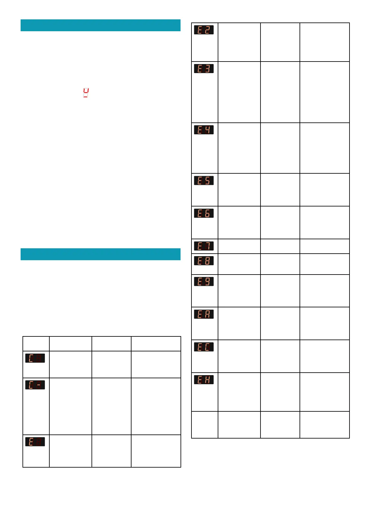 zone errors (E/x) dier. In case of cooking zone errors the display of
