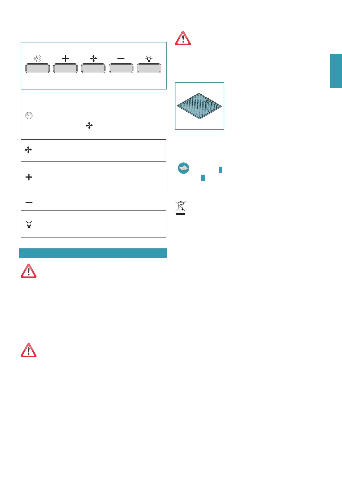 Special attention is to be paid to the metal anti-grease filters. In fact, frequent cleaning of
