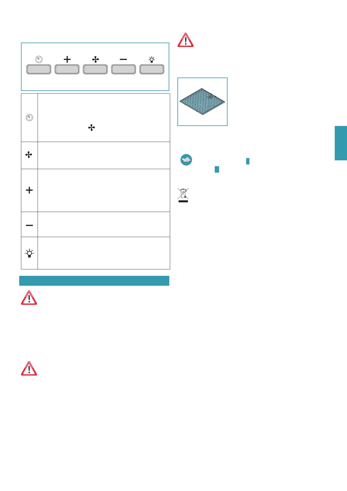 Si nécessaire, la hotte peut être commandée manuellement en agissant sur le tableau de