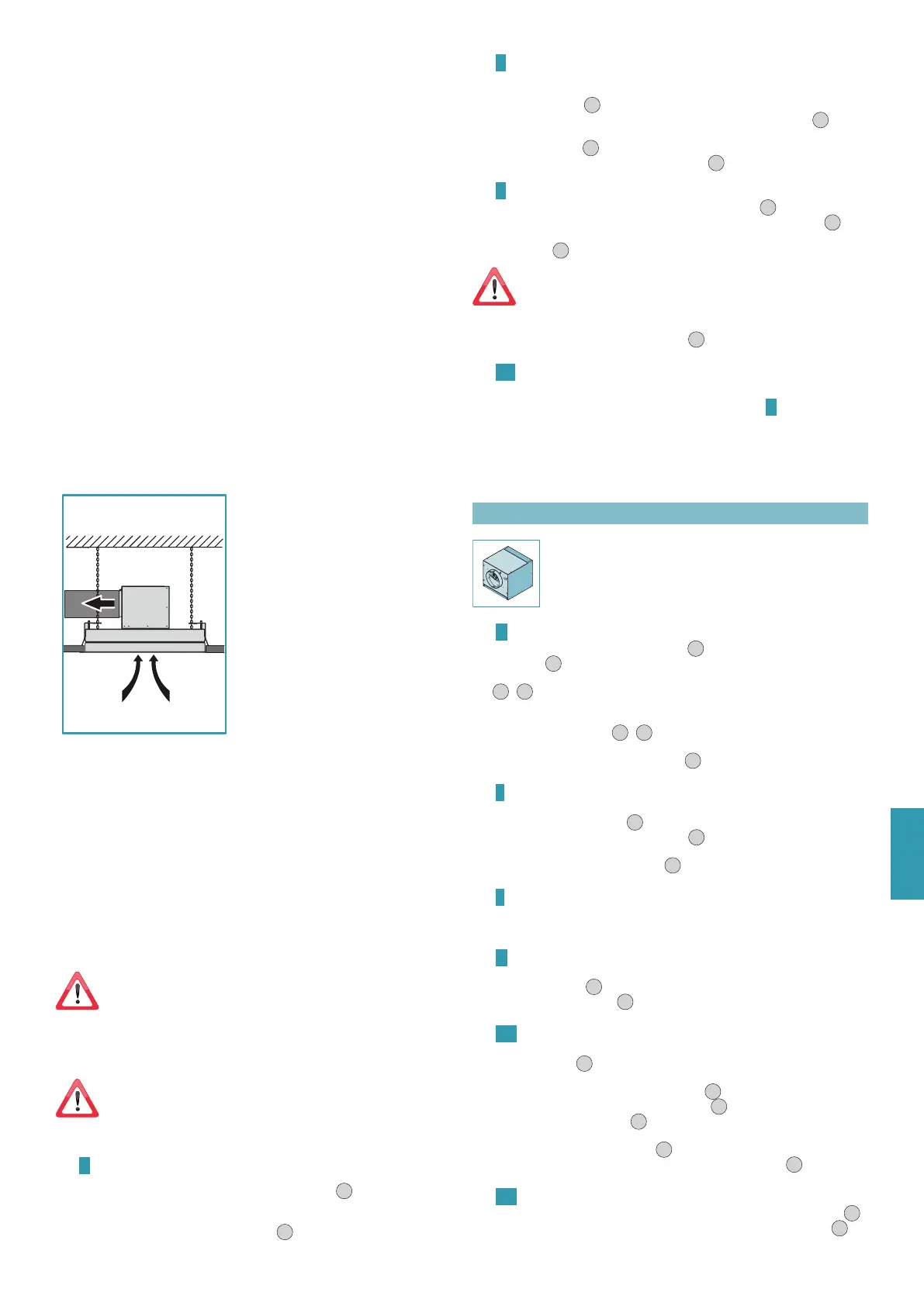 Inserir o exaustor no revestimento do teto: os ganchos (G) abrindo-se suportam provisoriamen-