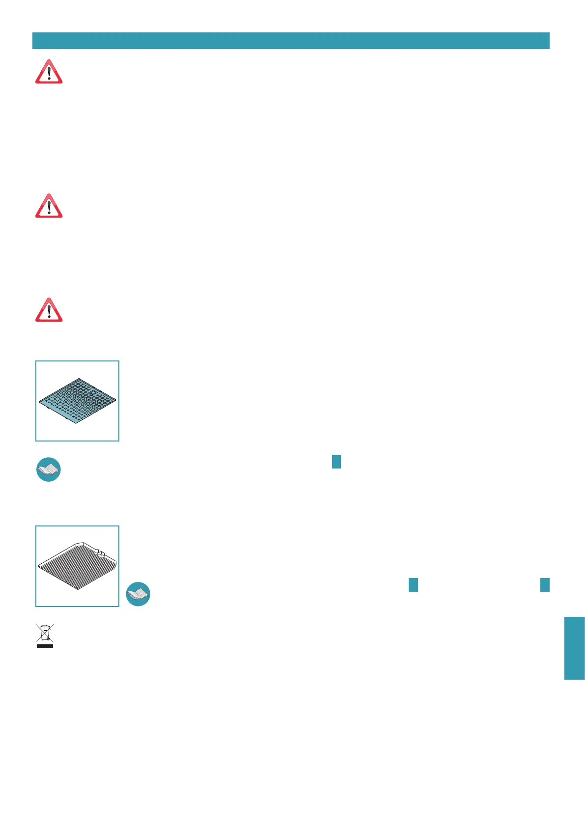 Särskild uppmärksamhet bör ägnas åt metallfettltren och åt de aktiva kolltren. Regelbunden rengöring av ltren och deras stöd kommer att se till