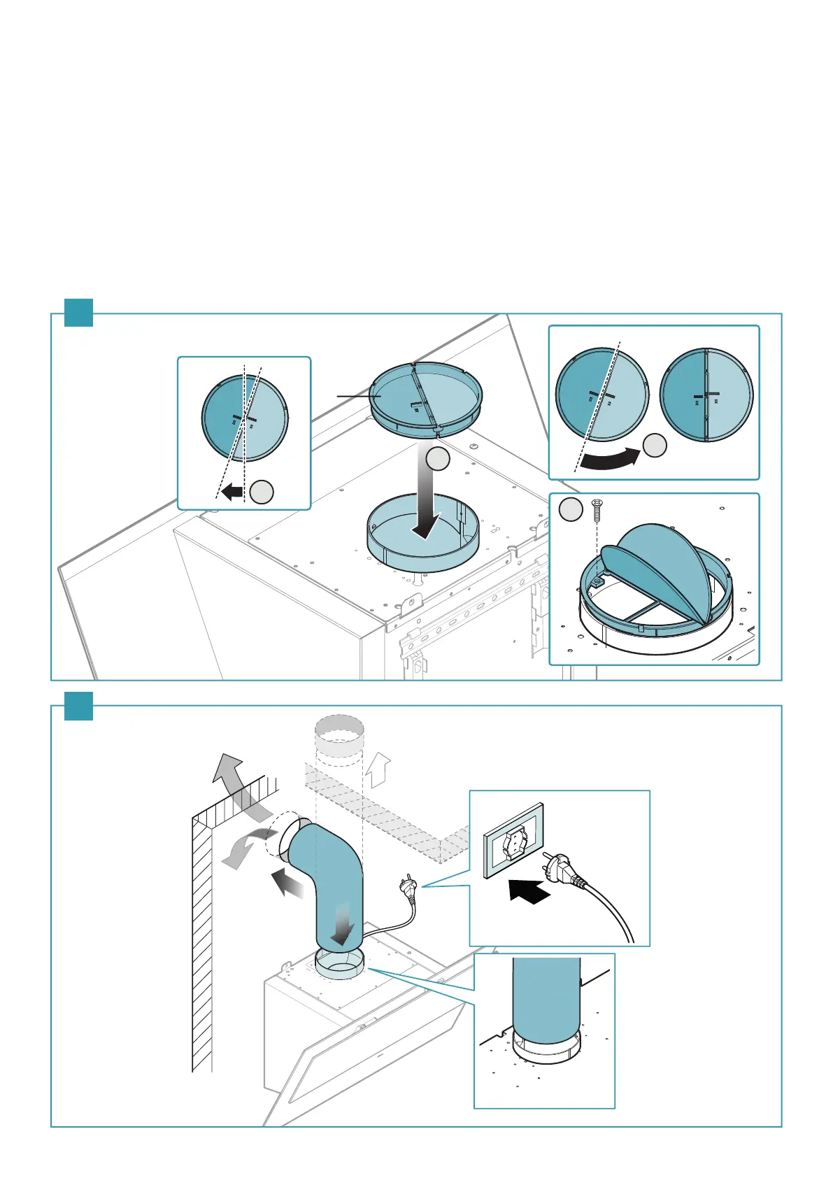 SE - Installation av backventilen (3) samt montering av utsugningsröret (4).