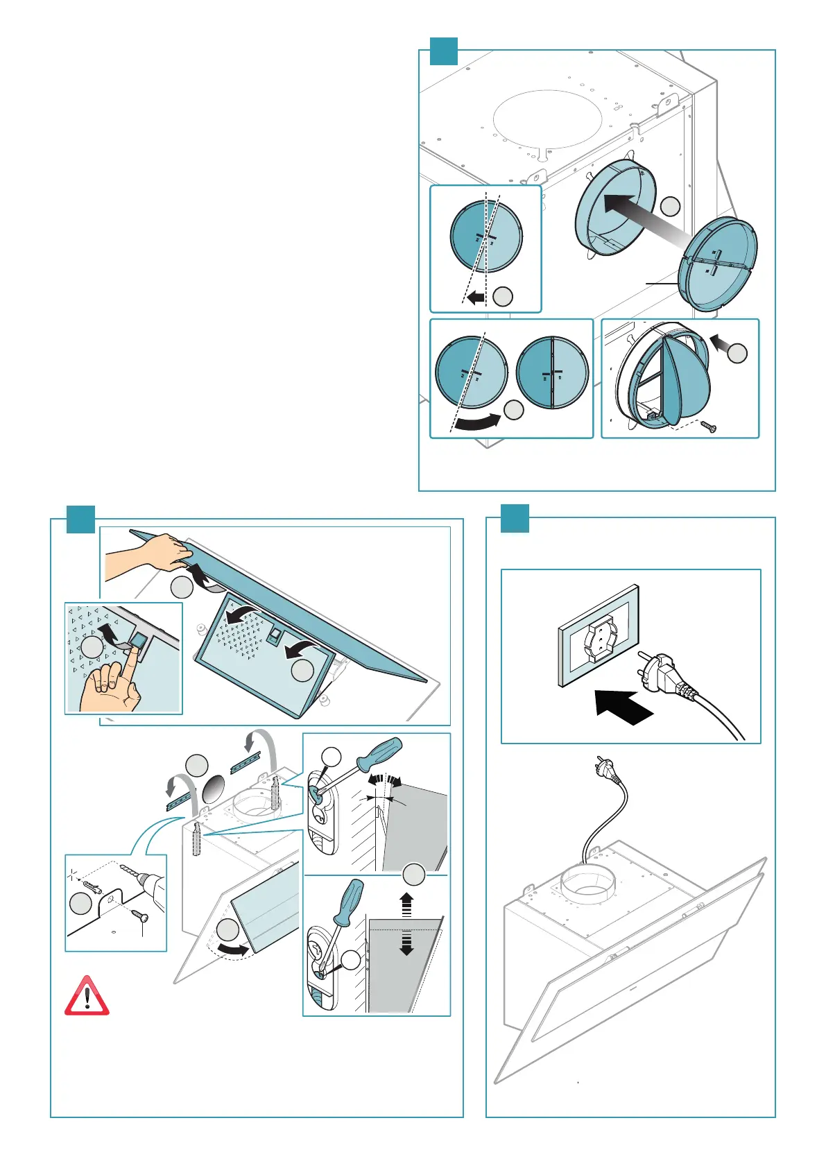 FR - Installation du clapet anti-retour (8). Fixation de la hotte (9).
