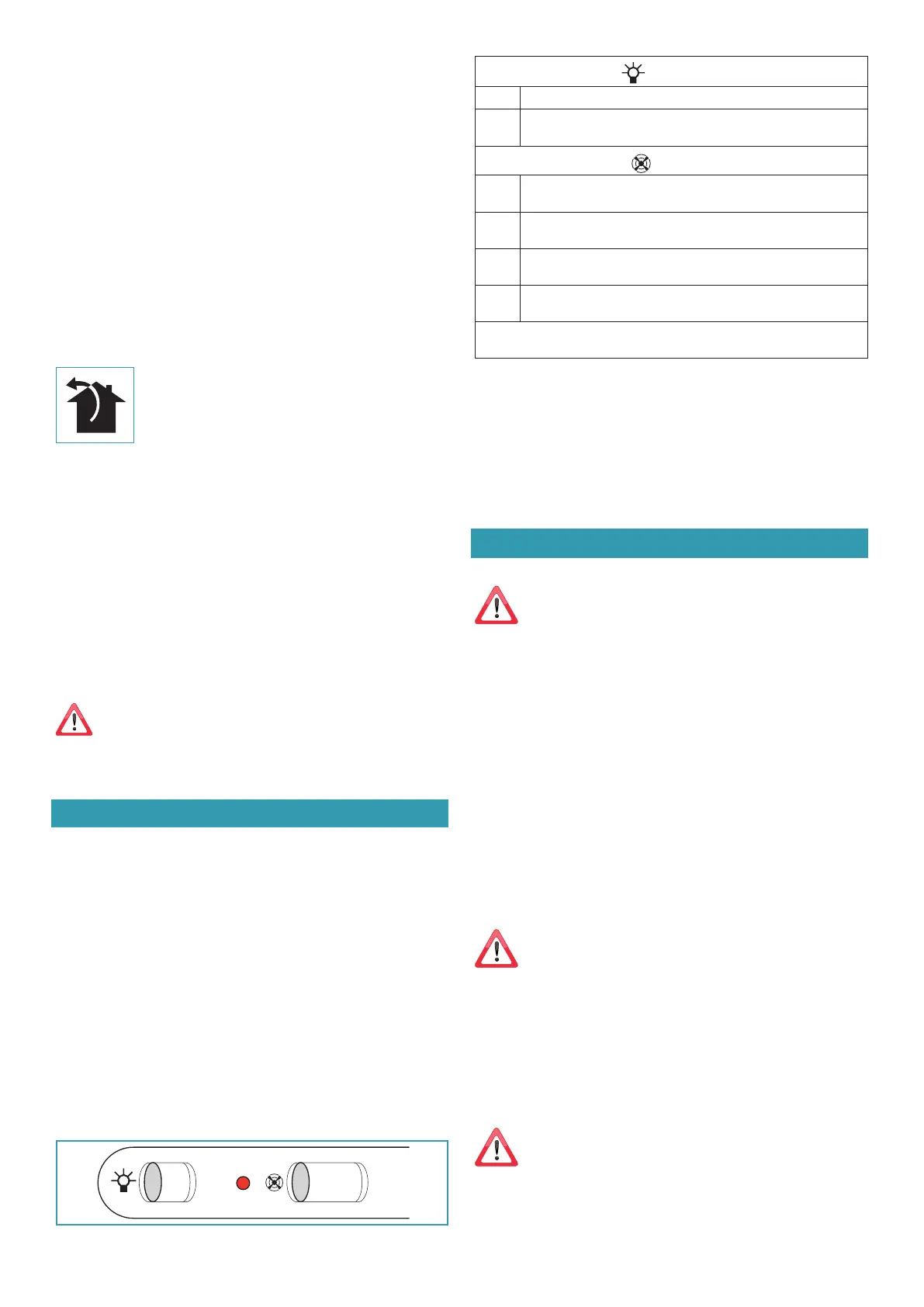 Para la iluminación, en las campanas provistas de dos focos, un slider permite