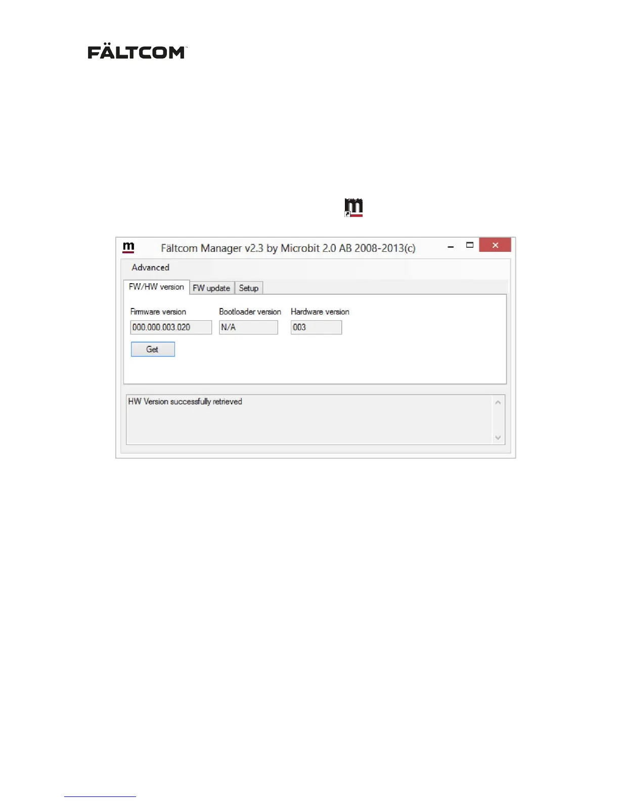 firmware. The upgrade requires the Windows program “Fältcom Manager” and is available from