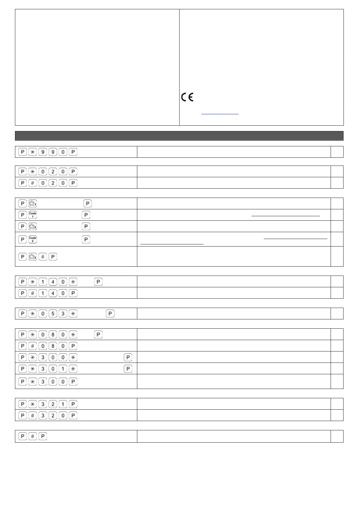 programación se activa pulsando “0” y el botón de alarma dur. 10 seg.