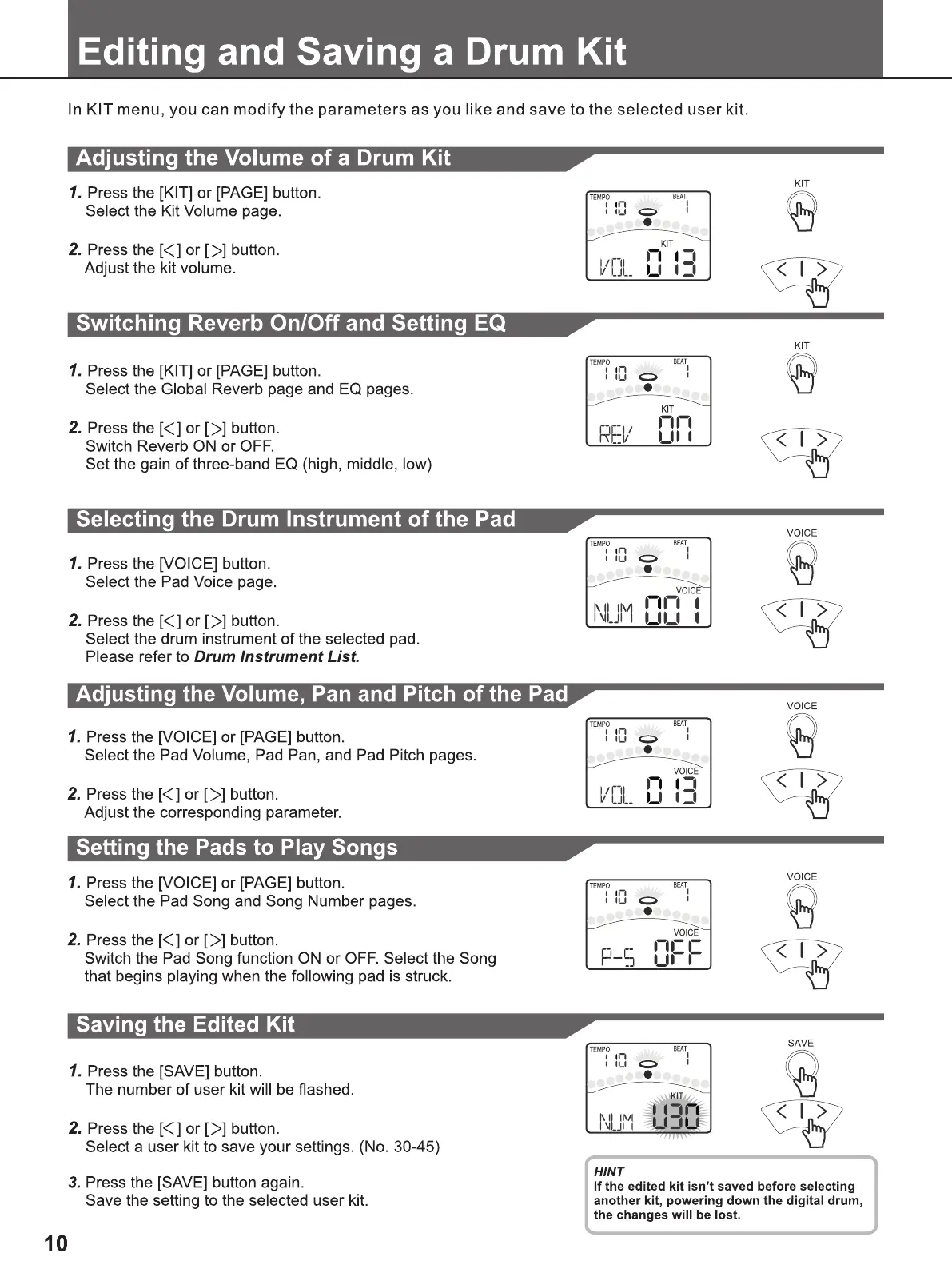 FAME DD 6500 - Editing and Saving Drum Kits; Customizing Kit and Pad Parameters; Assigning Songs to Pads and Saving Kits