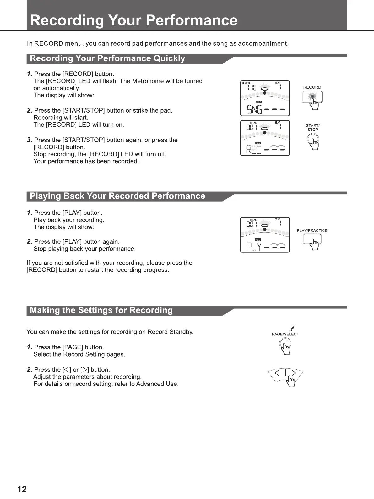 FAME DD 6500 - Recording Your Performance; Quick Performance Recording and Playback; Setting Up and Initiating Recording