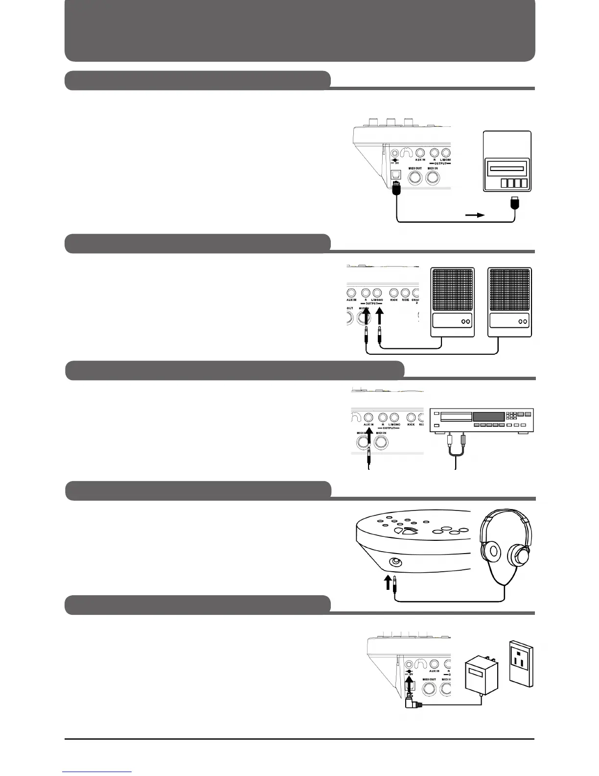 1. If you want to listen to the drums via an external system, connect