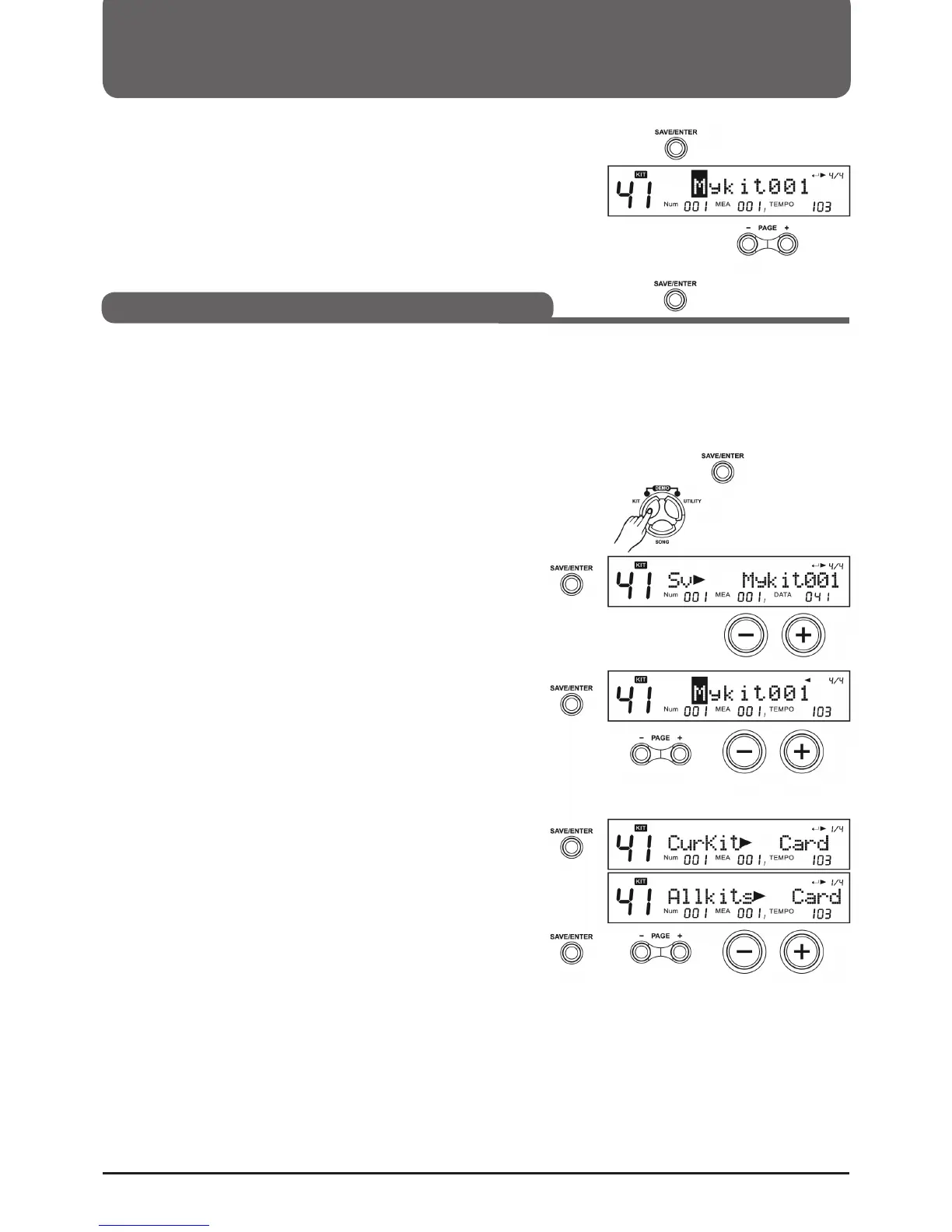 1. Press KIT, then use the +/- buttons or the selection dial to select