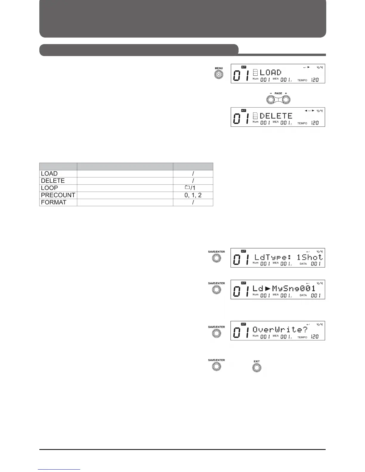 of the kits (*.KIT), all user songs or general settings (*.SET). If