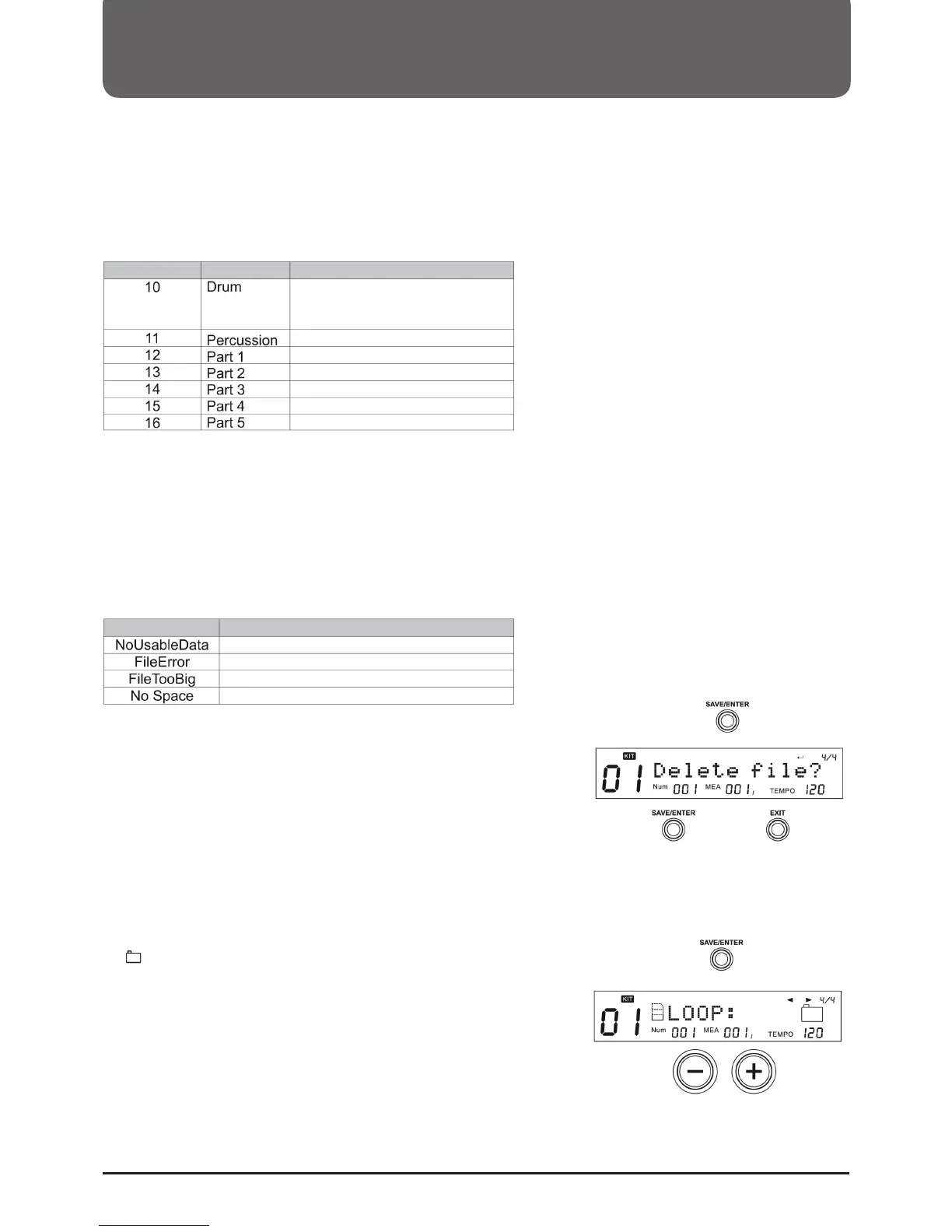 Only the first of channel 12-16 of the MIDI file is used.