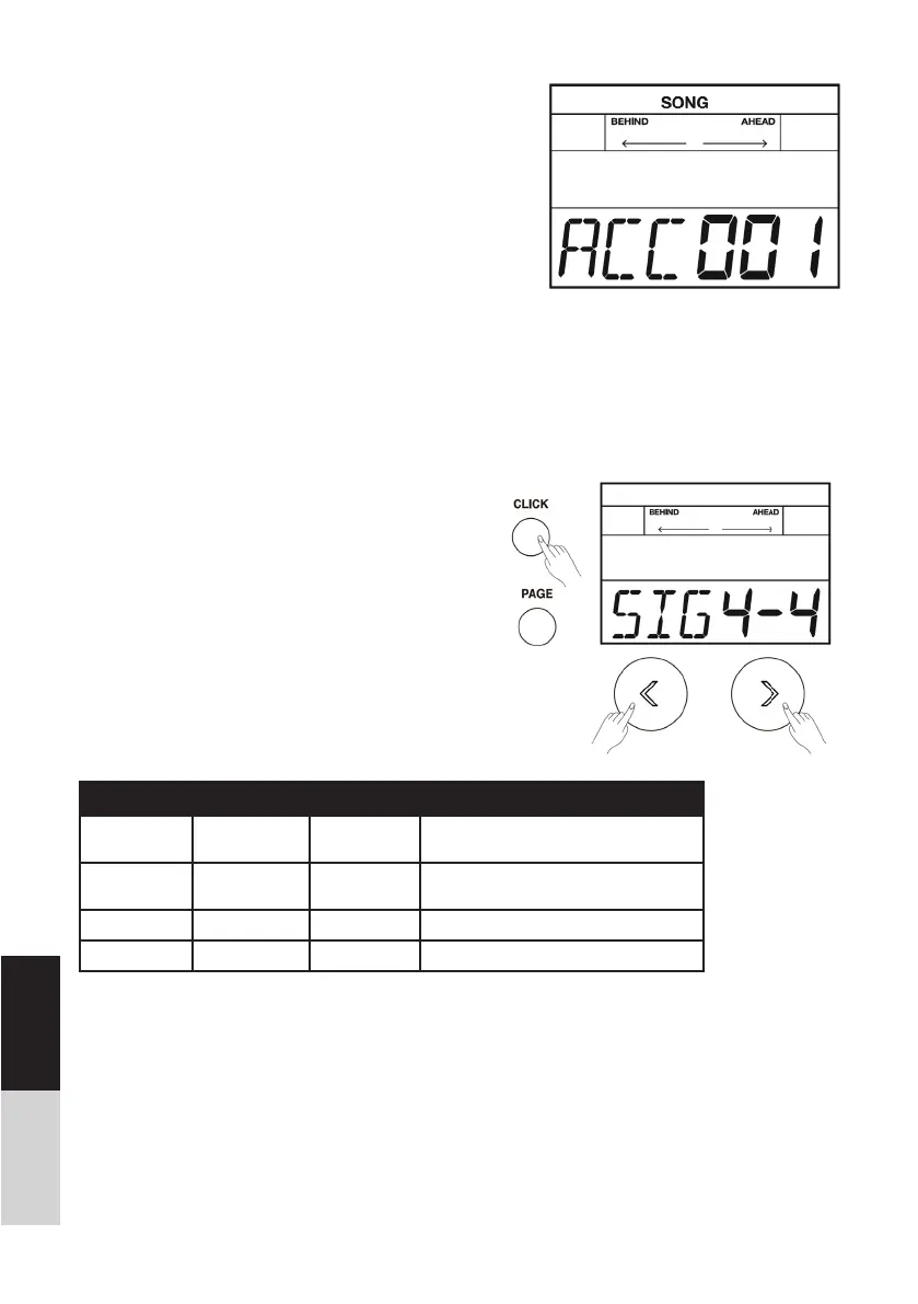 VOLUME 0~5 VOL XXX Adjust the volume of metronome.