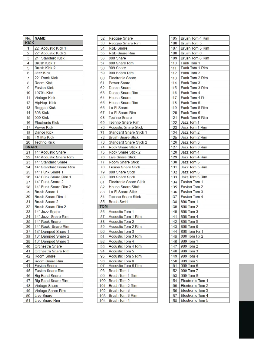 Drum Voice List: