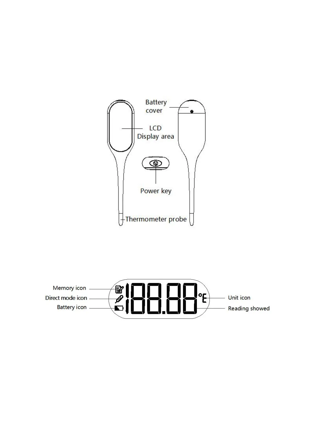 The thermometer mainly consists of plastic shell, thermistor, PCBA, buzzer chip, LCD display,and battery.