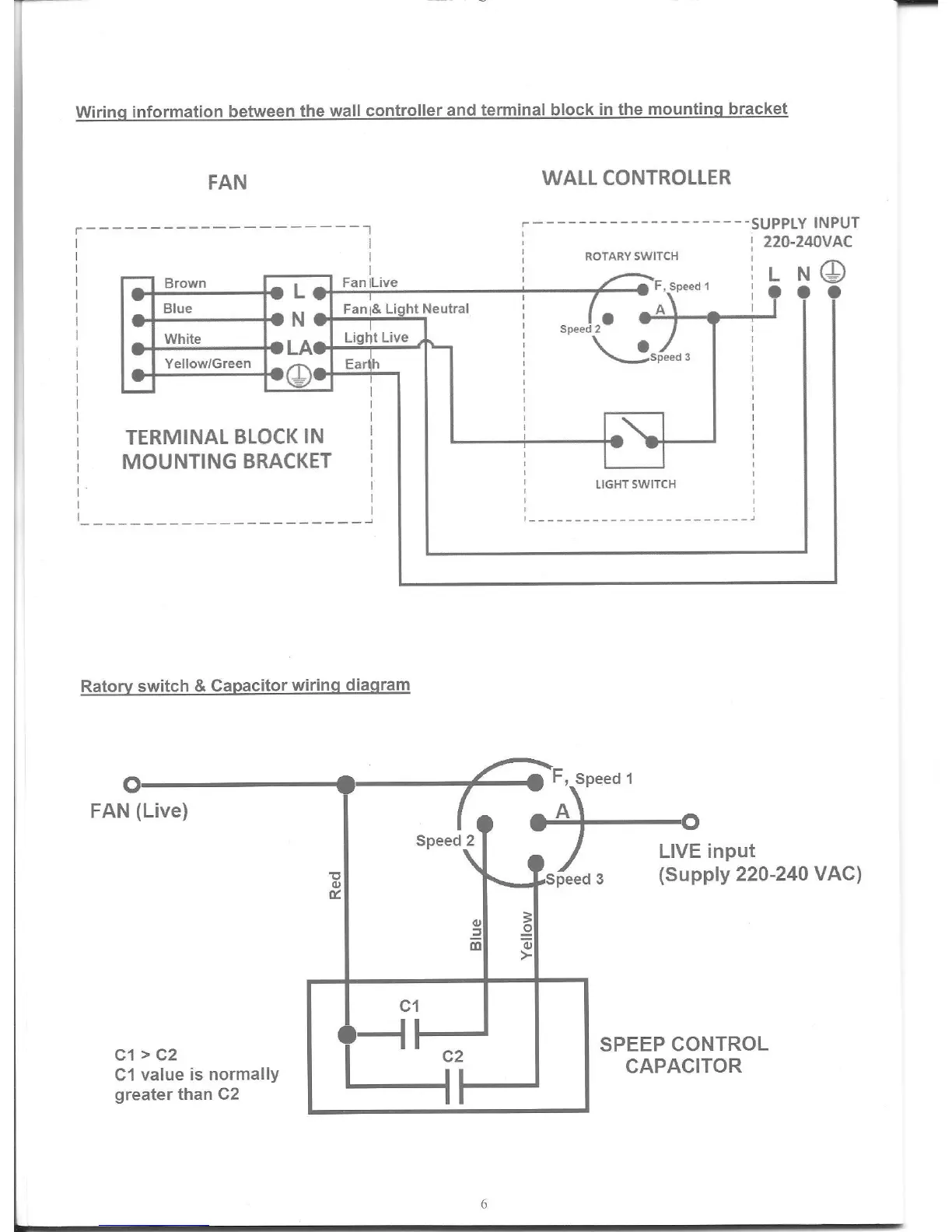 Fanaway EVO2 - Rotary Switch & Capacitor Wiring Diagram
