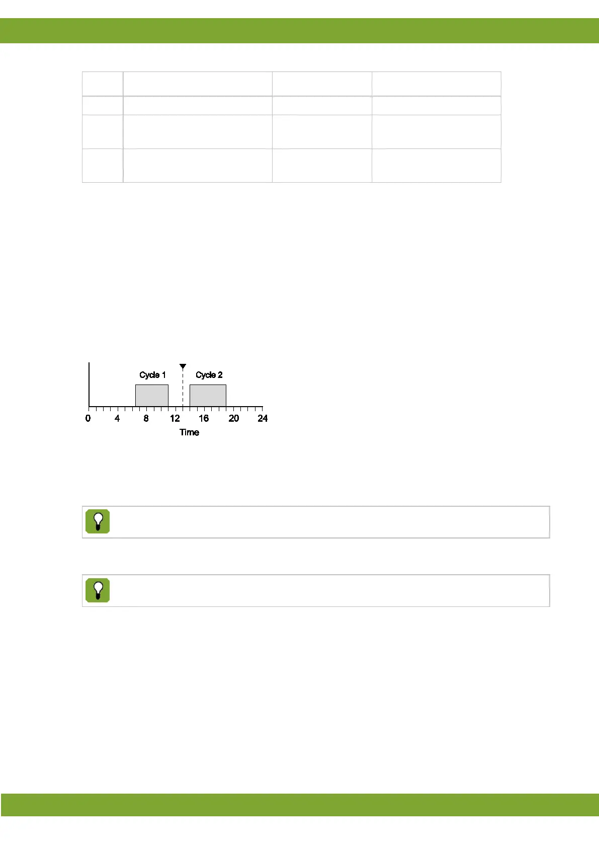 Figure 6: Example graph of two cycles (6.30-11.00 h and 14.00-19.00 h) set in the clock. The dotted line indicates