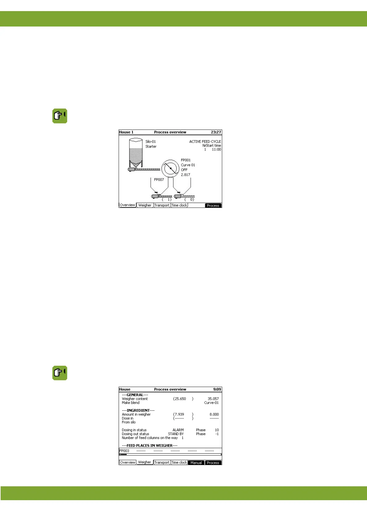 This screen shows the actual status of the feed process. The controller shows the information in different views.