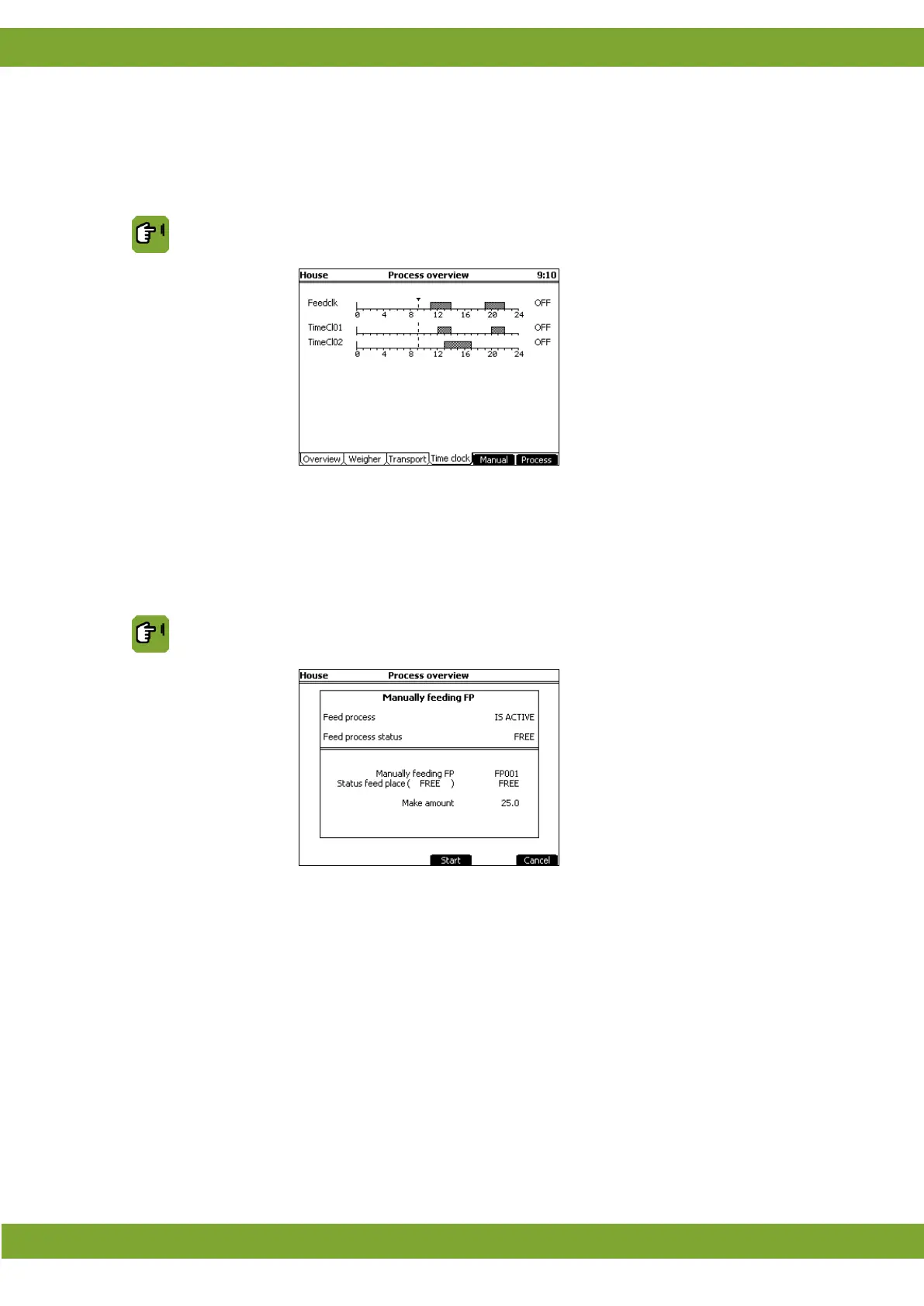Process overview tab page Time clock