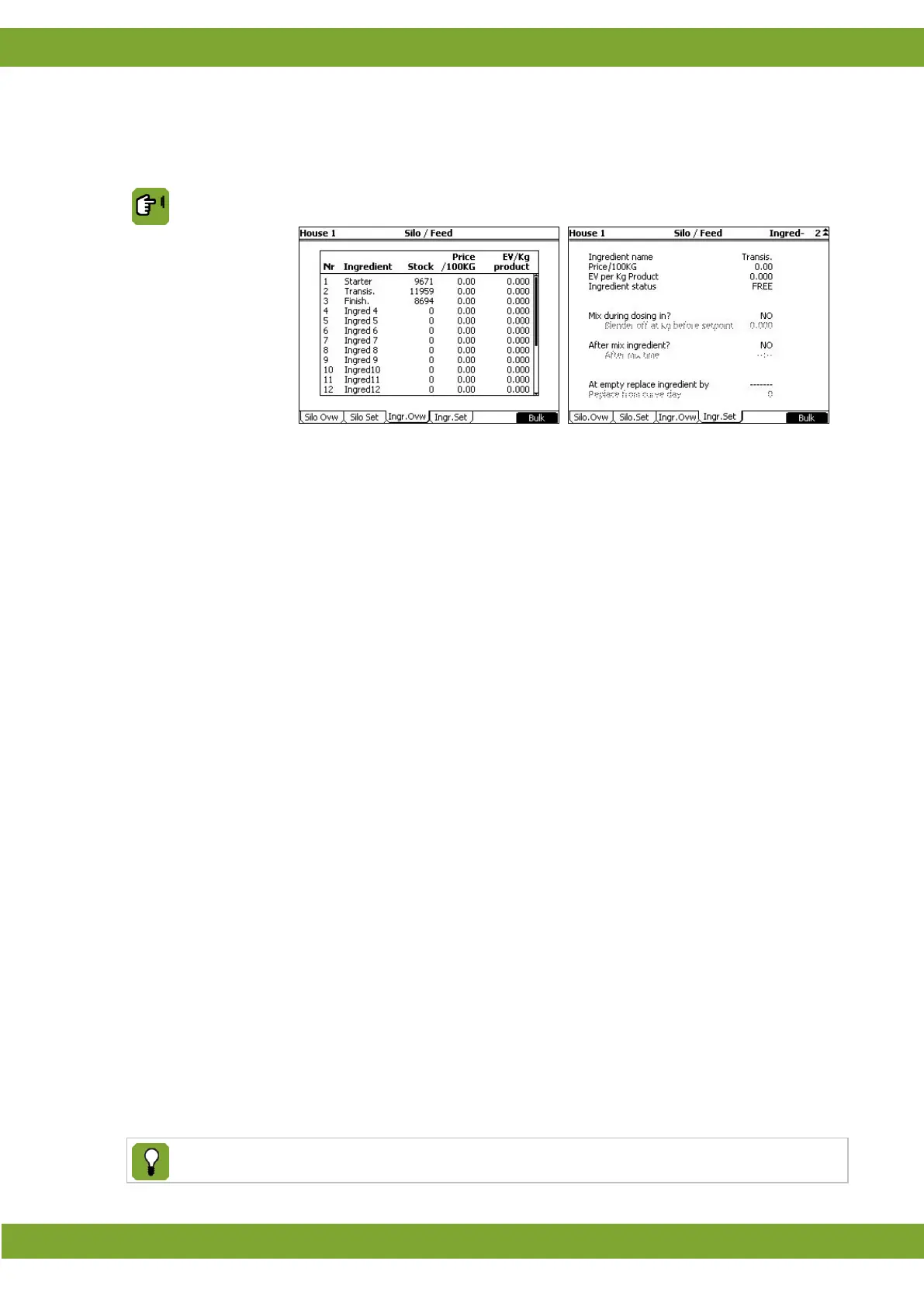 In this tab page the basic feed ingredient settings can be entered and the stock per ingredient is shown. This stock