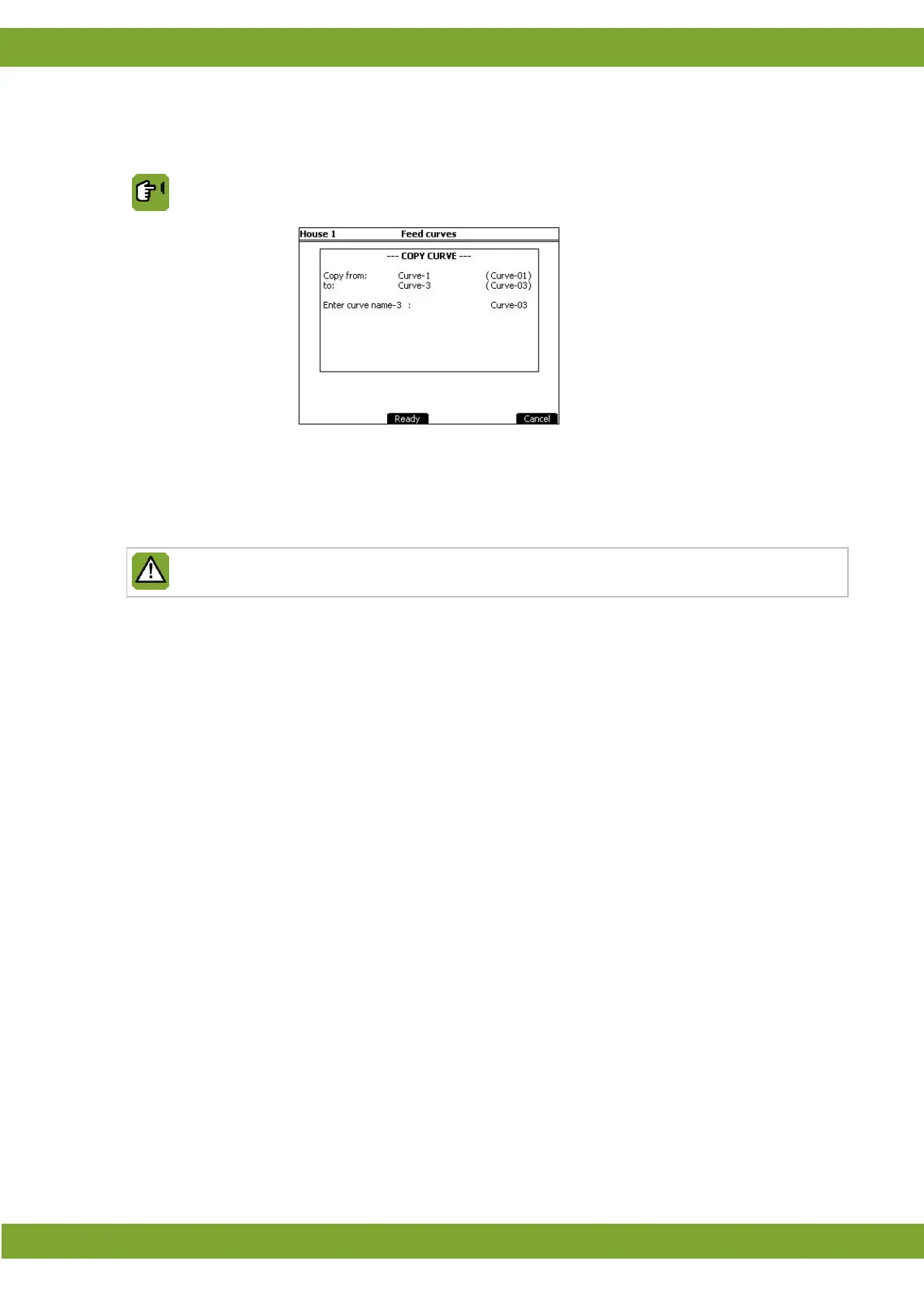 Setting of the feed curve the data have been copy to.
