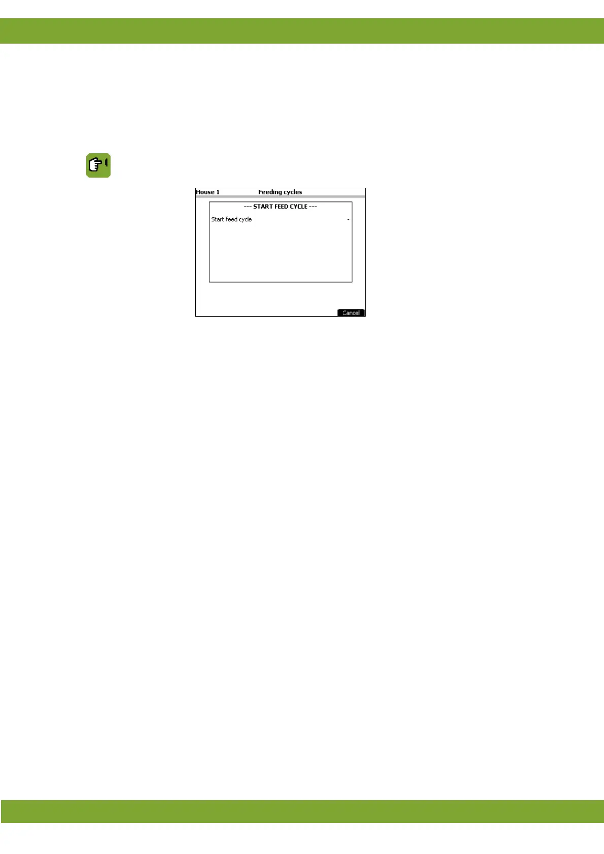 Feeding cycles tab page Start feed cycle