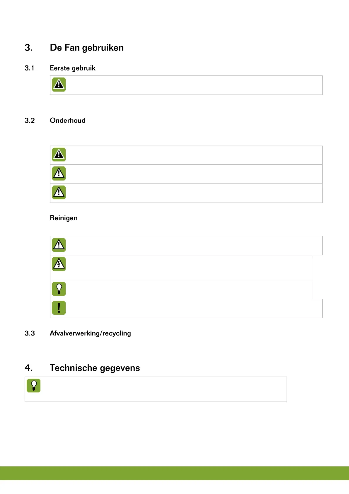 aan uw installateur. Een beschadigde Fan is onveilig!