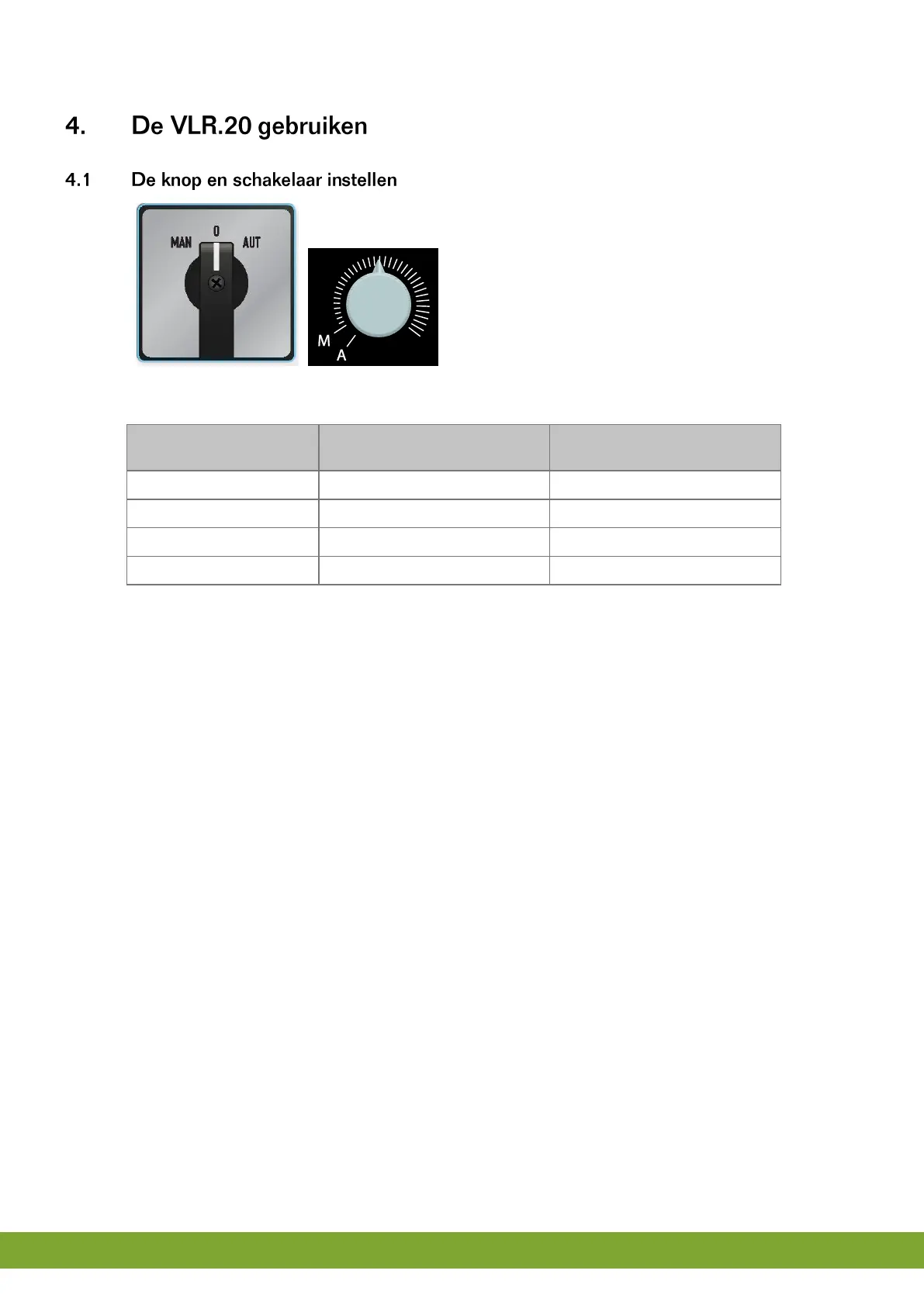 In geval van storing kunt u de VLR.20 door middel van de schakelaar en de draaiknop op het voorfront handmatig