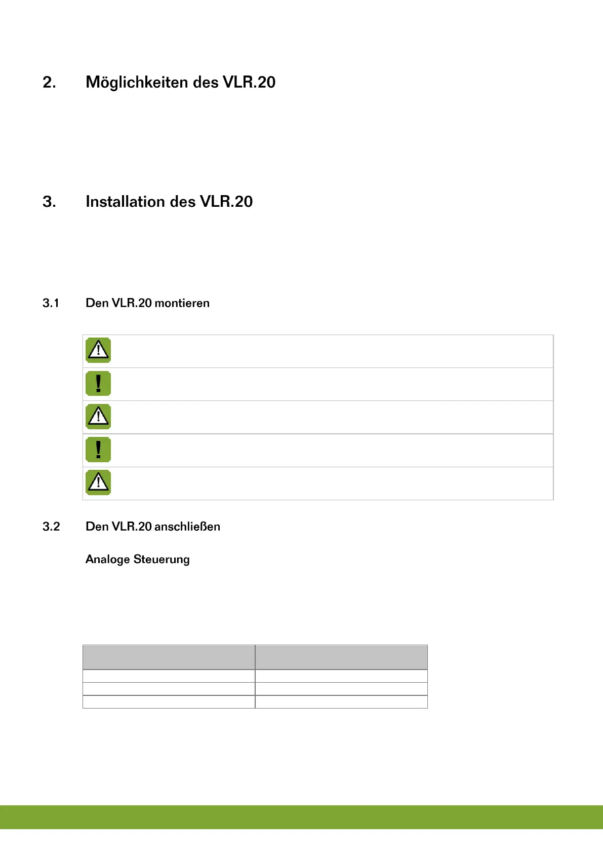 1. Montieren Sie den VLR.20 (siehe Seite 3)