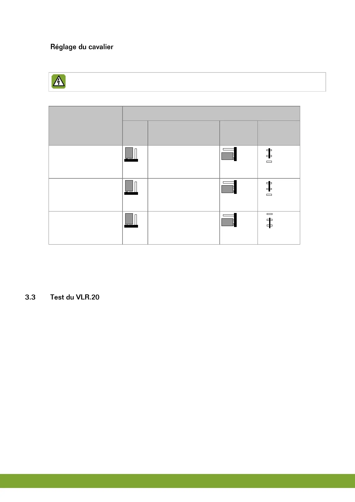 Couper la tension du VLR.20 avant de régler le(s) cavalier(s).