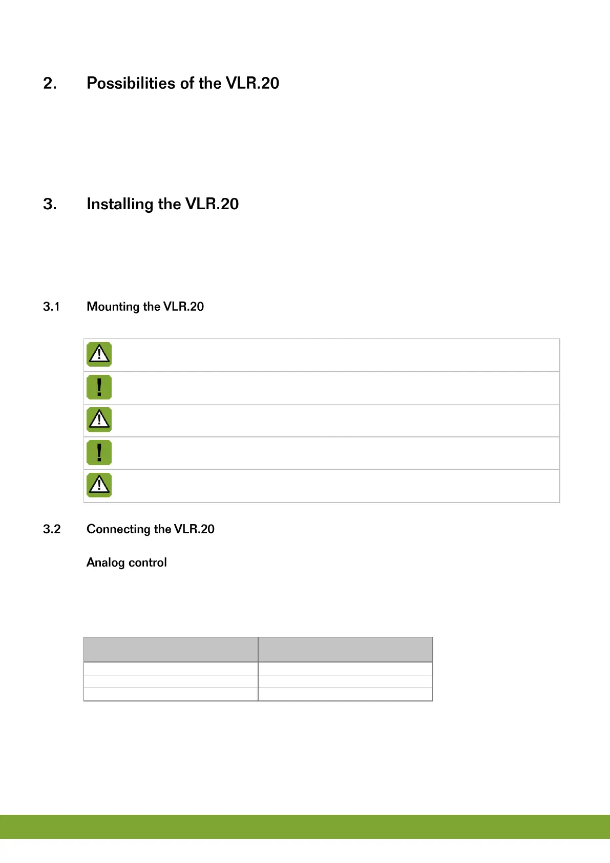 Never mount the VLR.20 in a room where animals are present because of the (manual) control.