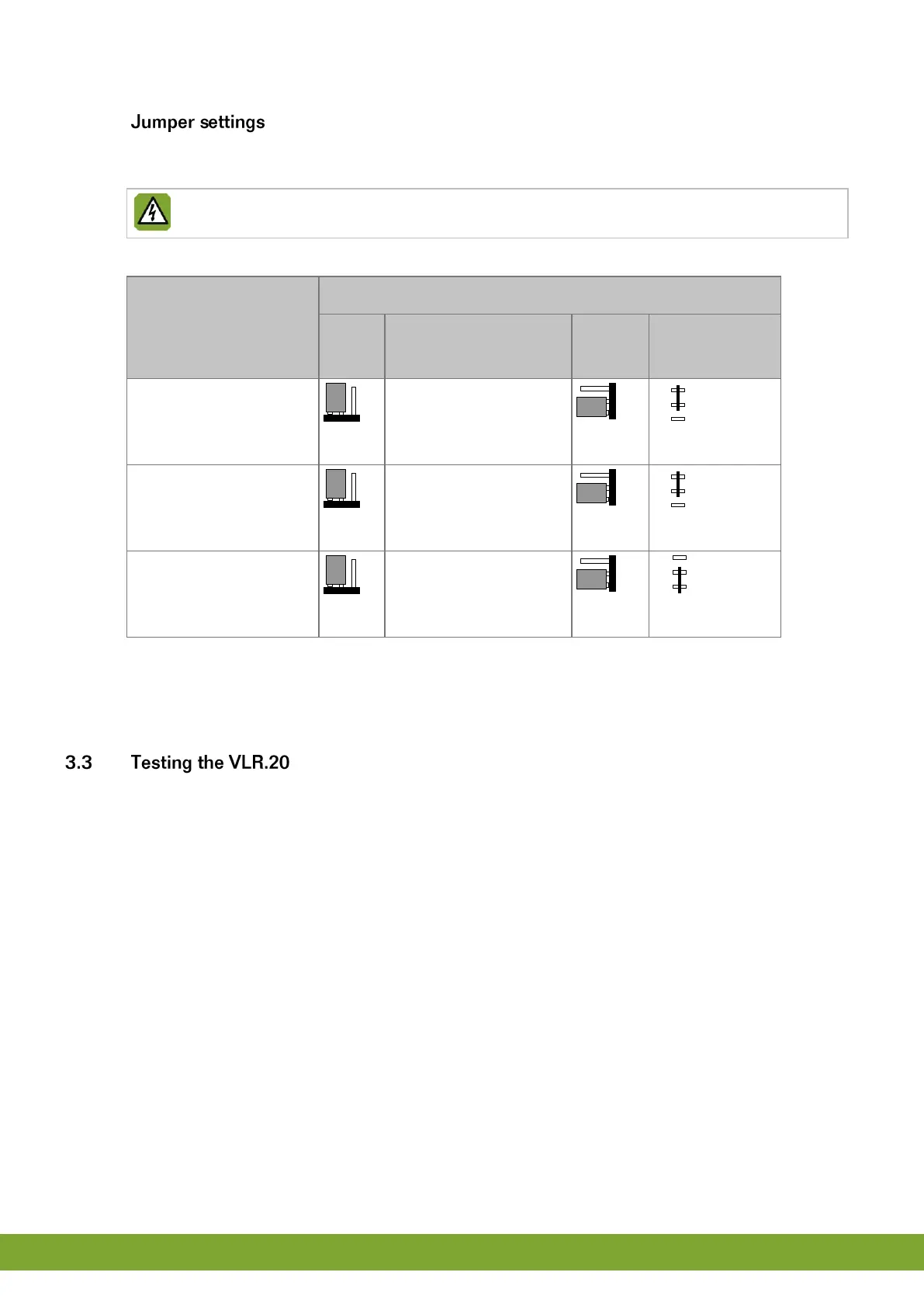 Disconnect the power for the VLR.20 before setting the jumper(s).