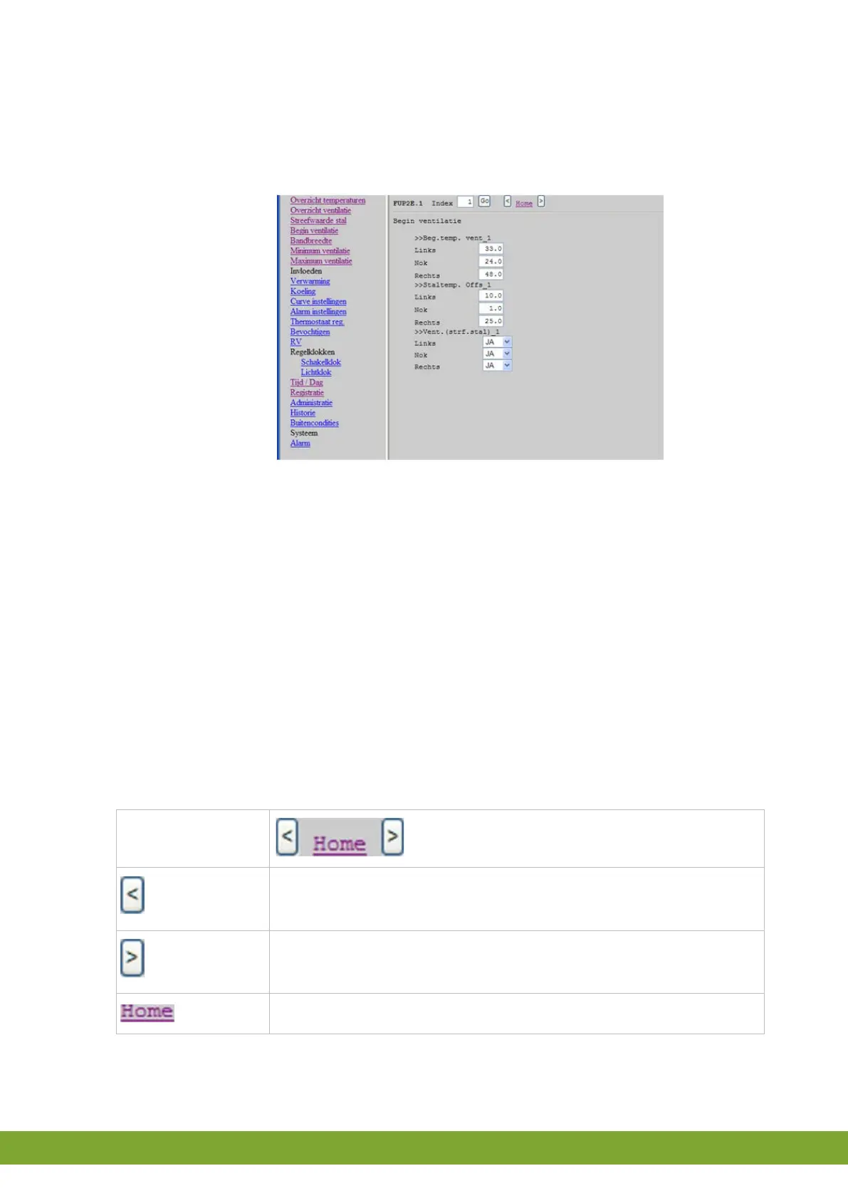 Op het bovenstaande scherm is het gebruikersgedeelte van de regelaar te zien. De