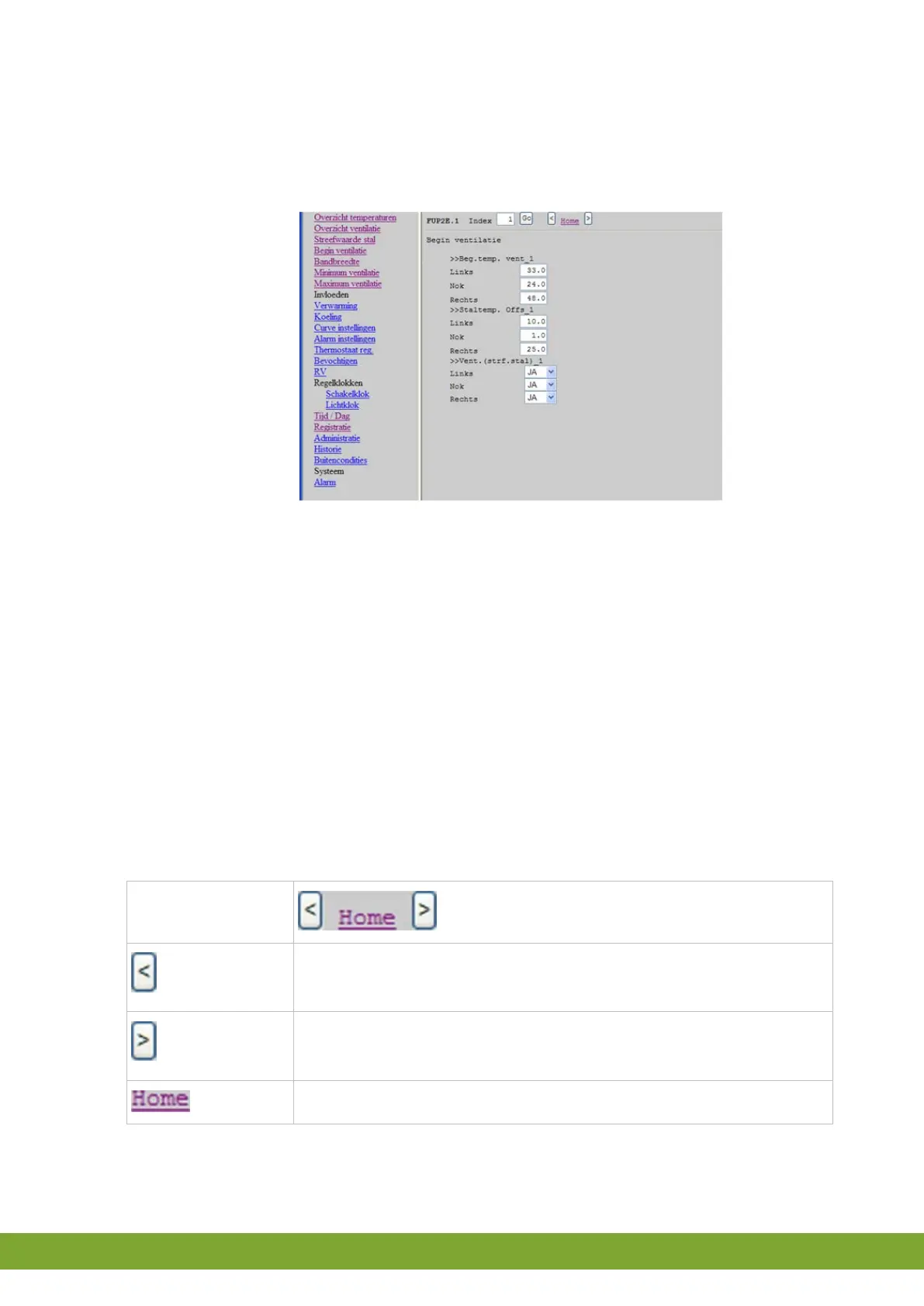 El marco de la izquierda muestra los menús y submenús del controlador. Por defecto