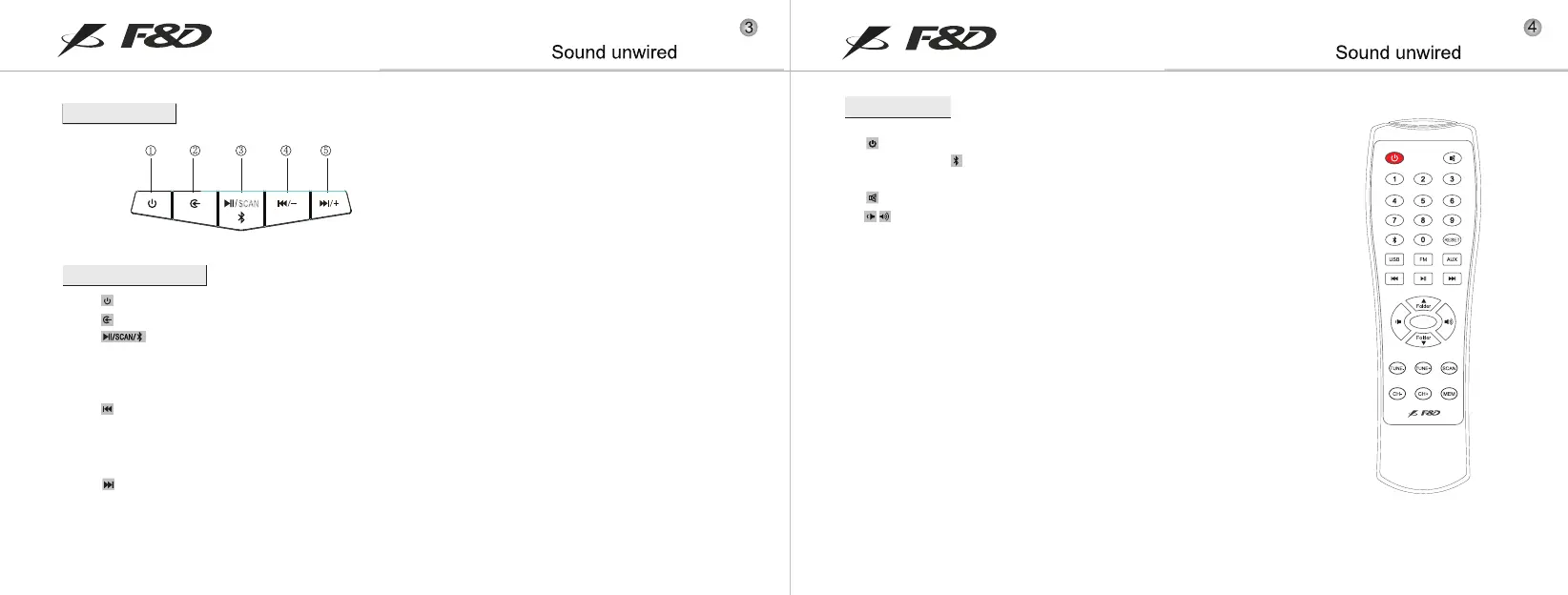 B. AUX,Bluetooth ,USB (For USB Mode) and FM key: short press the keys to
