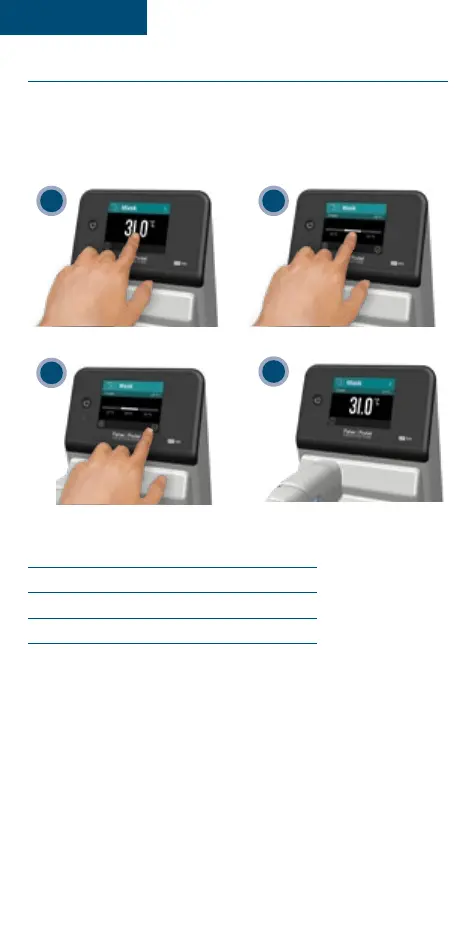 I lägena Mask och Optiflow är det möjligt att ändra måltemperaturen för att skapa