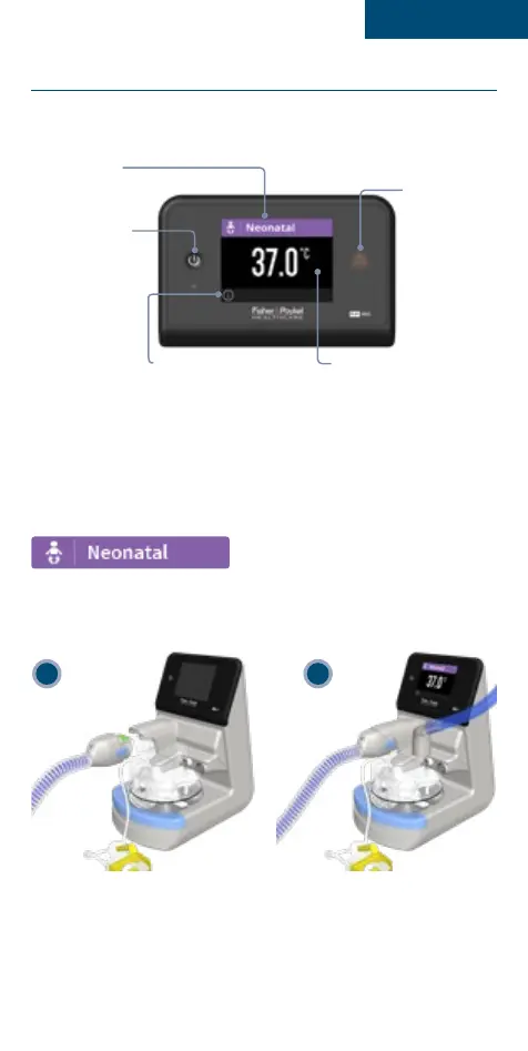 När en neonatal slangsats är ansluten kan F&P 950 respiratorisk befuktare
