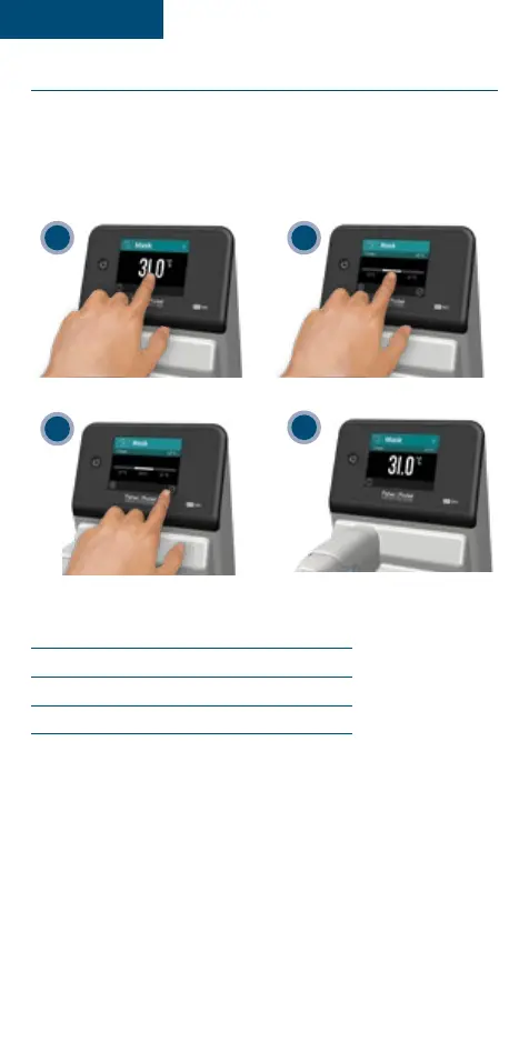 I maske- og Optiflow-tilstand er det muligt at ændre måltemperaturen for at