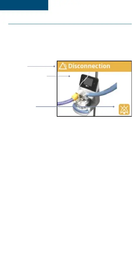 beeld ‘Disconnection’ (Losgekoppeld) en hoorbare alarmen moeten activeren�