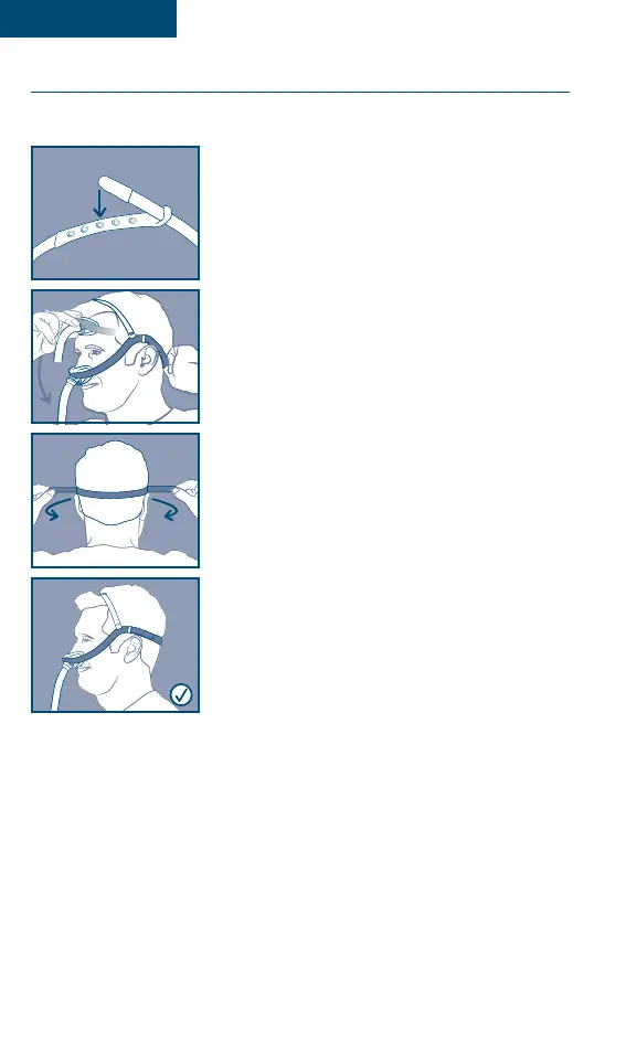 encendida, reajuste la correa posterior (E) hasta que la mascarilla