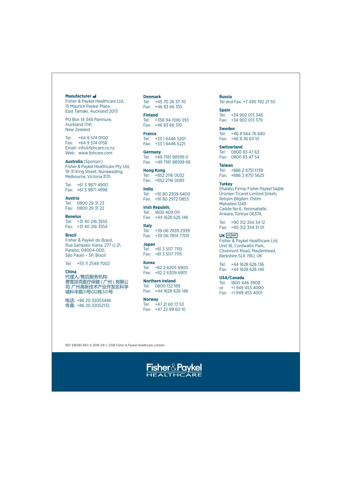 REF 616590 REV A 2018–09 © 2018 Fisher & Paykel Healthcare Limited